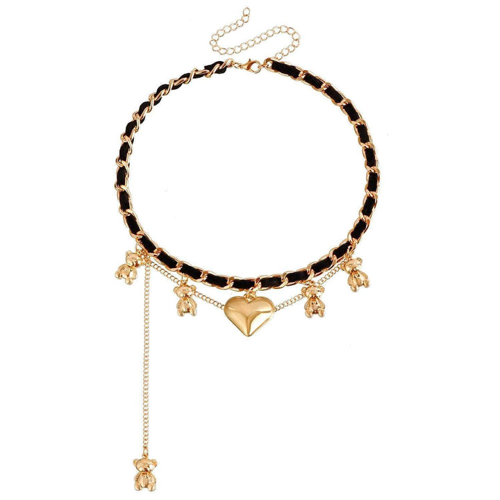 Fashionable Ladies Velvet Bear Pendant Love Necklace Female Tassel Clavicle Necklace