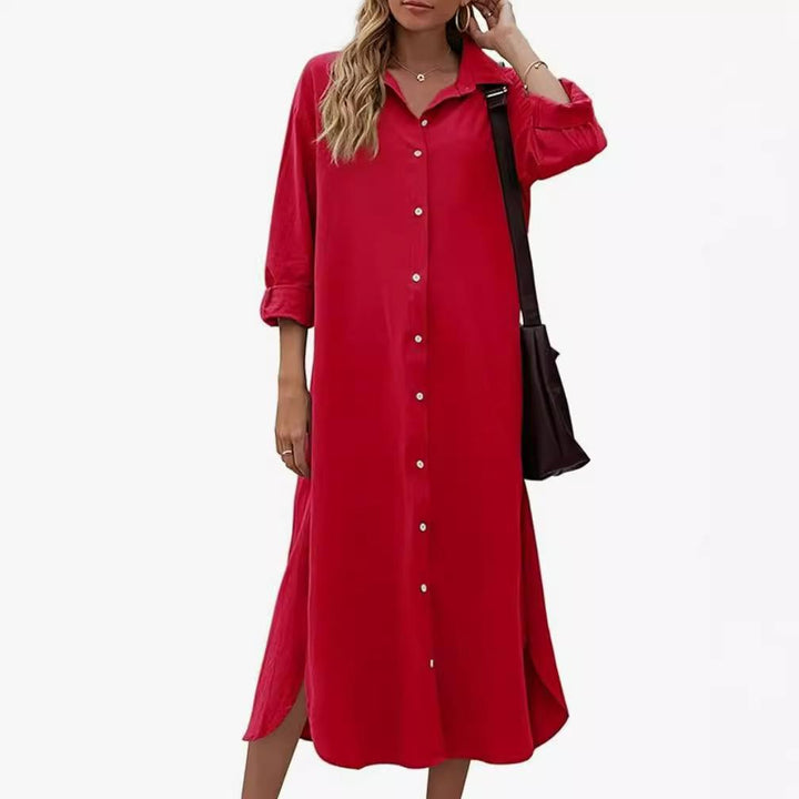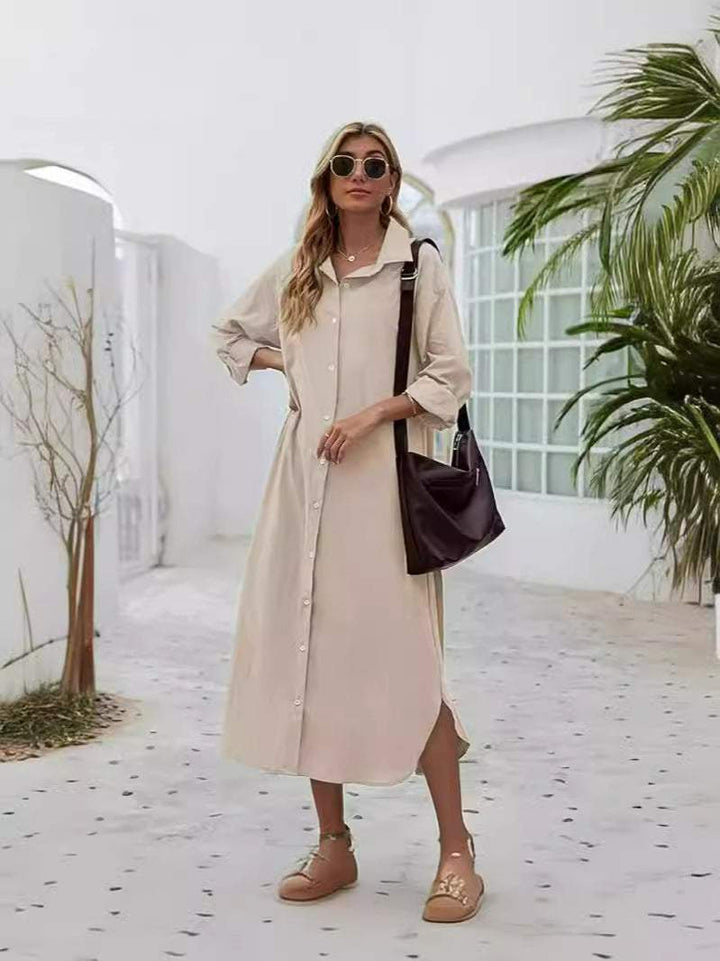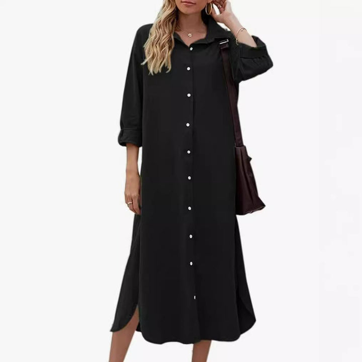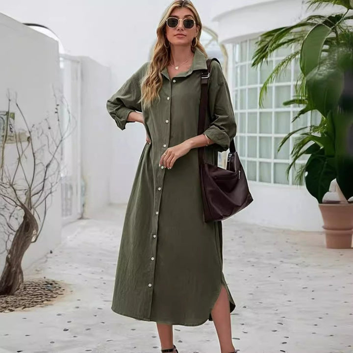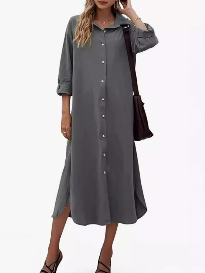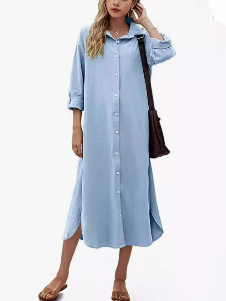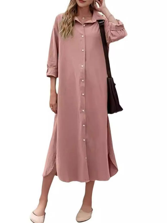 New Loose Long Sleeve Long Button Shirt Dress