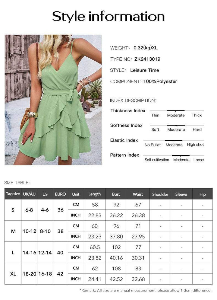 Women's casual V-neck solid color suspender dress
