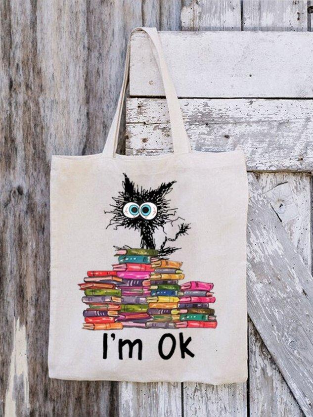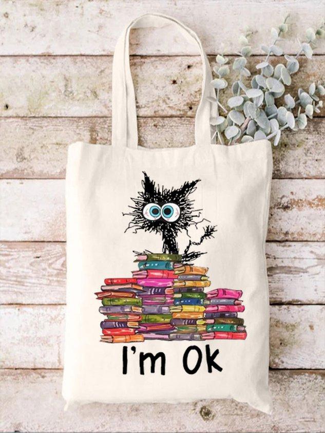 Women's Cats I'm Ok Funny Books Reading Love Cats Shopping Tote