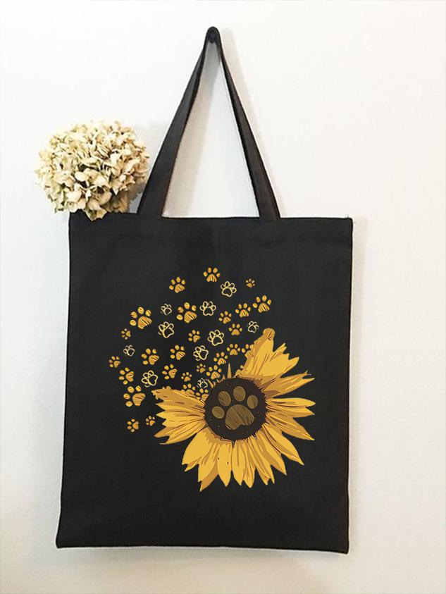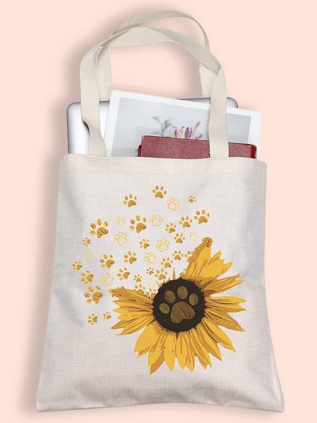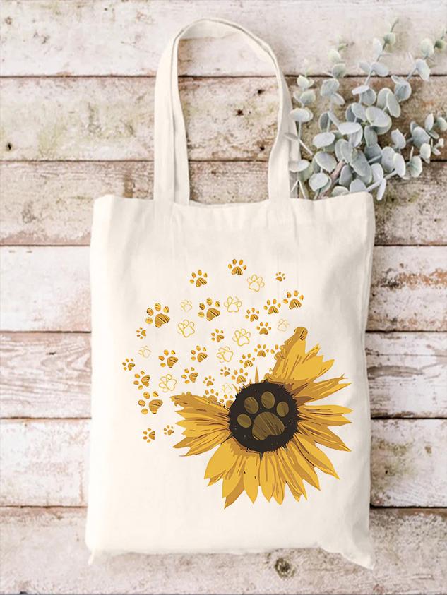 Women's Cute Dog Simple Sunflower Shopping Tote