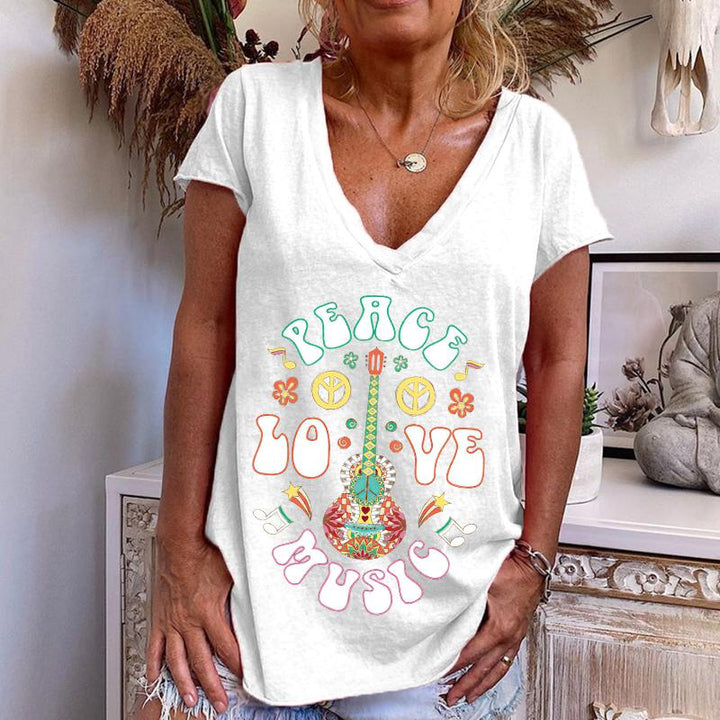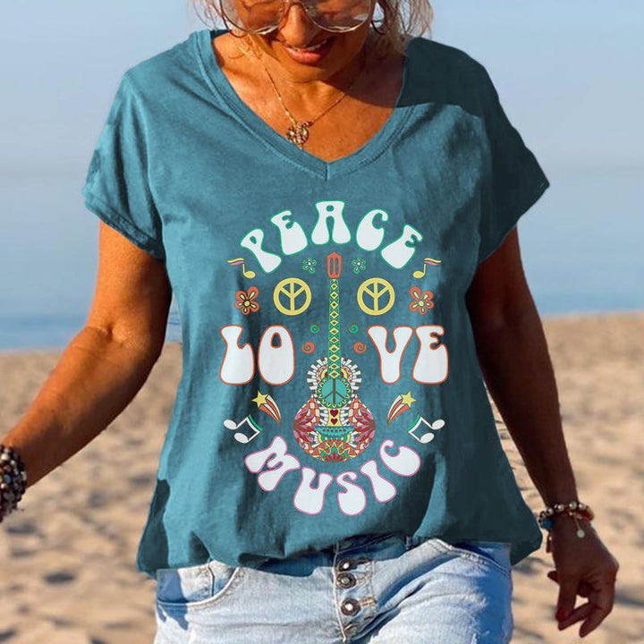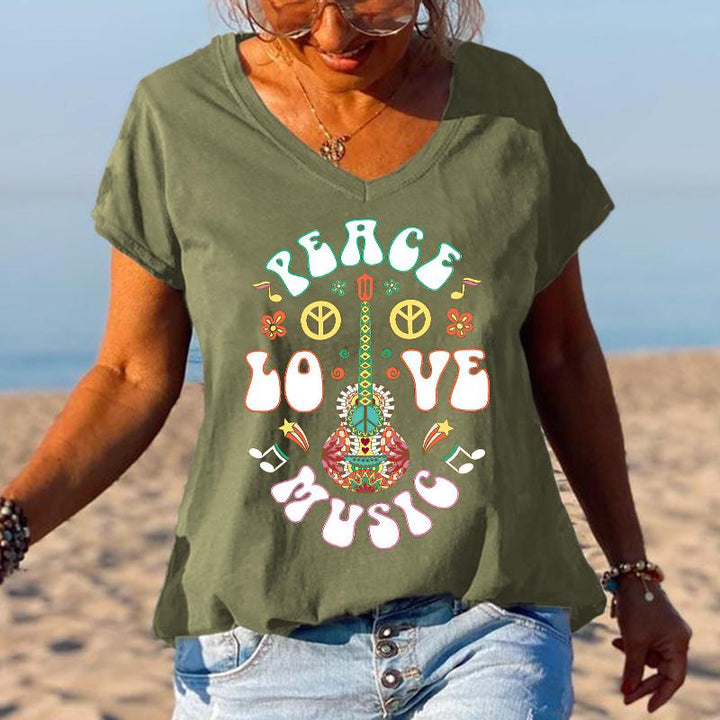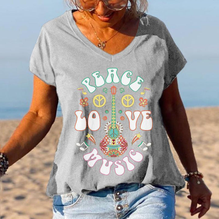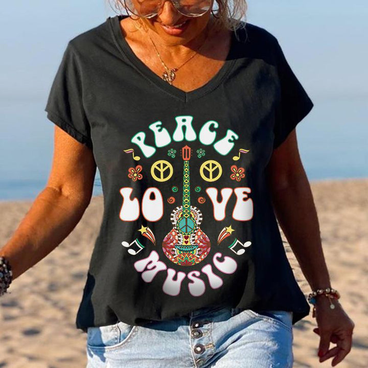 | Product Name | Floral Guitar Peace Love Music Printed Graphic Tees | ||