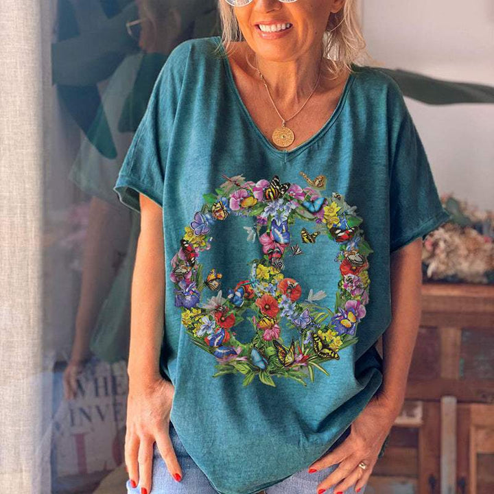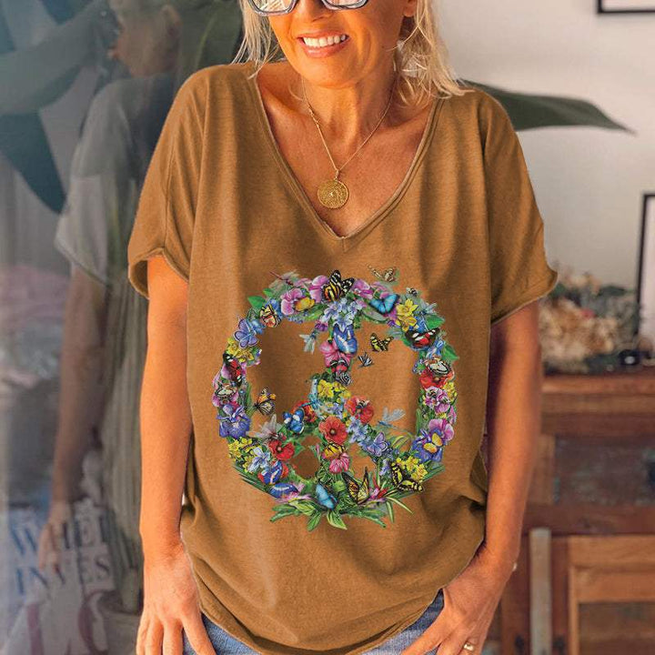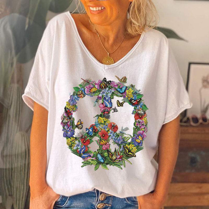 | Product Name | Hippies Flower Ring Design Simple Daily T-shirt | ||