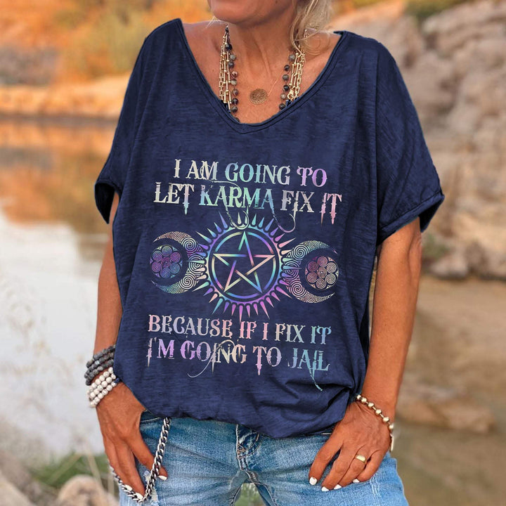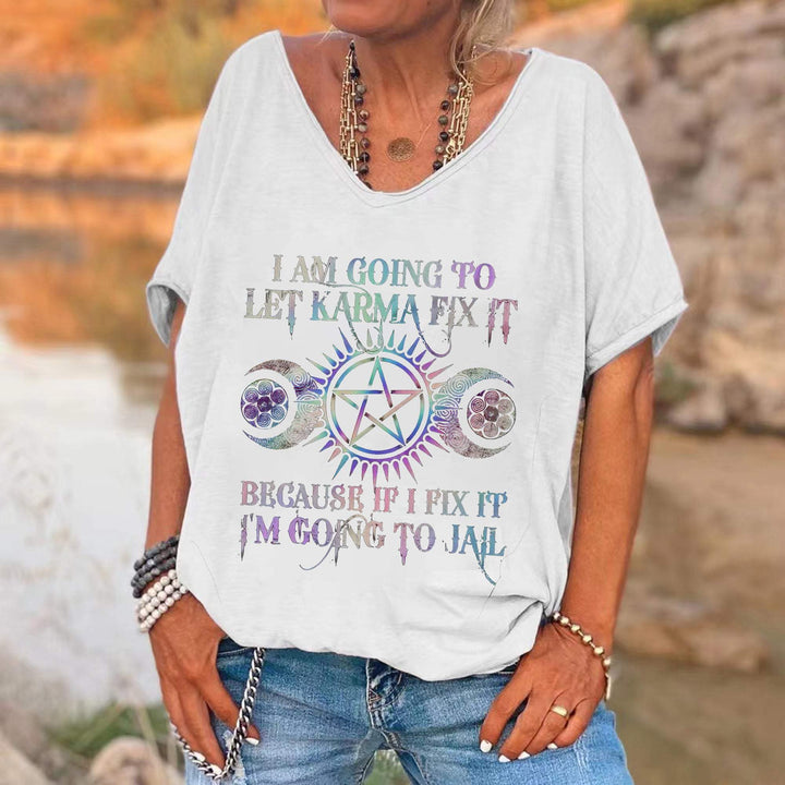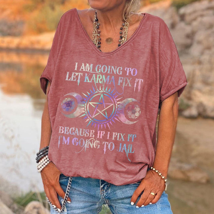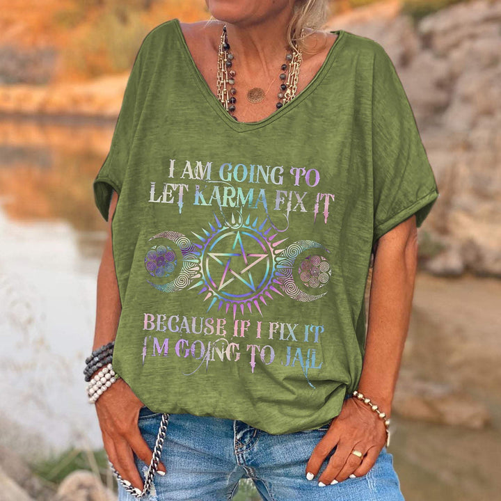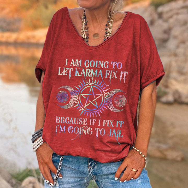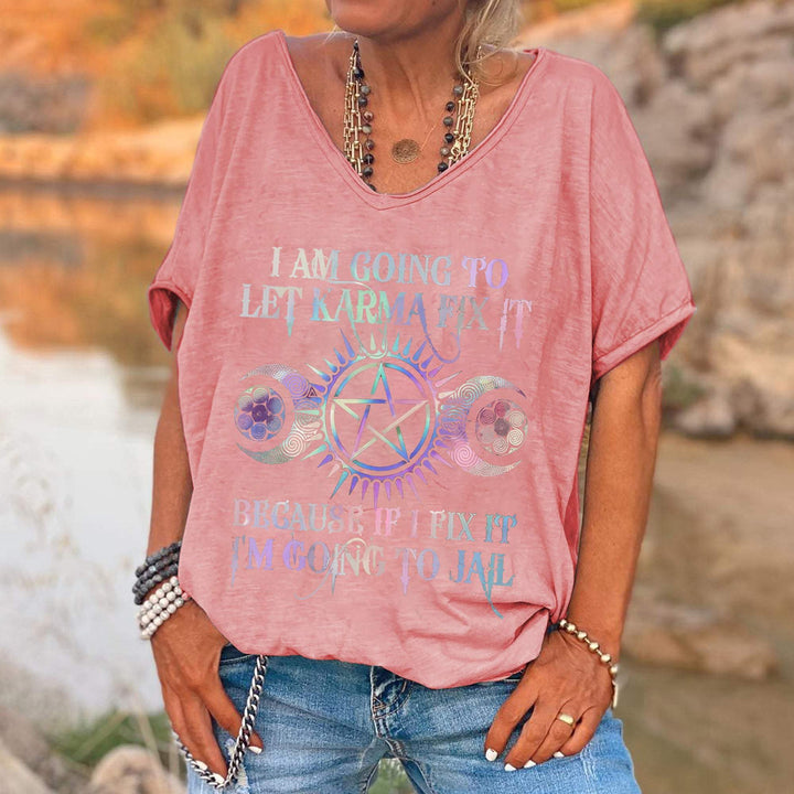 | Product Name | I Am Going To Let Karma Fix It Printed V-neck Women's T-shirt | ||