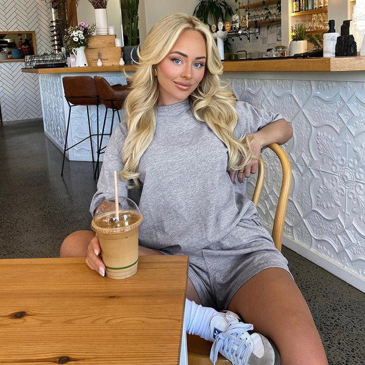 Women's short sleeve T-shirt with elastic waist and loose shorts two-piece set