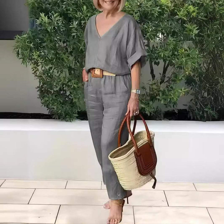 Fashionable and casual summer multi-color V-neck loose cotton and linen suit