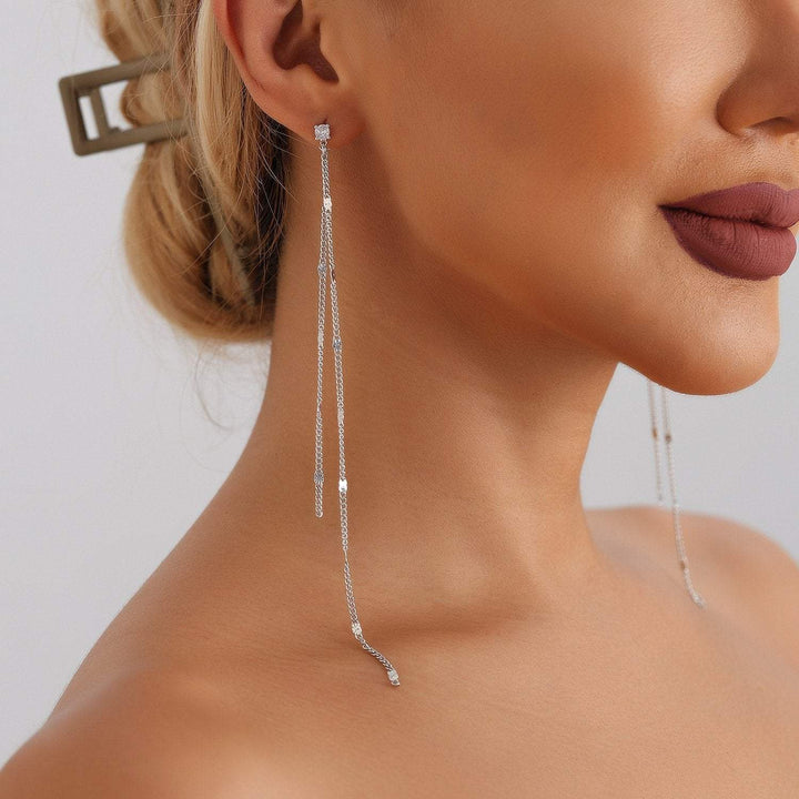 Fashionable And Simple Extra-Long Rhinestone Chain Tassel Earrings Versatile Earrings