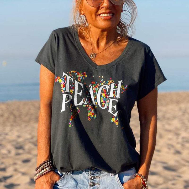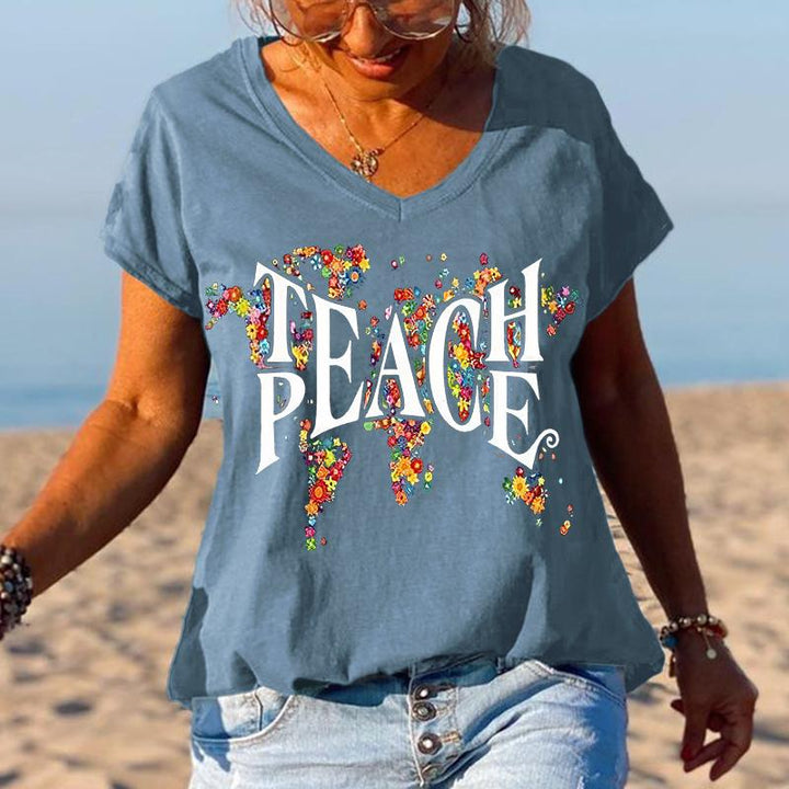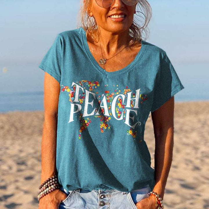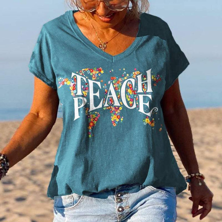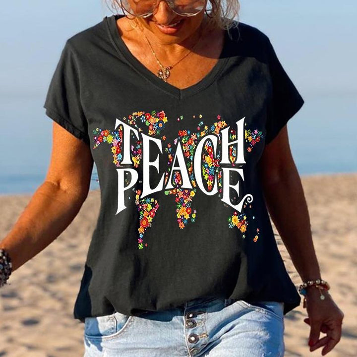 Product Name Peace special print V-neck T-shirt