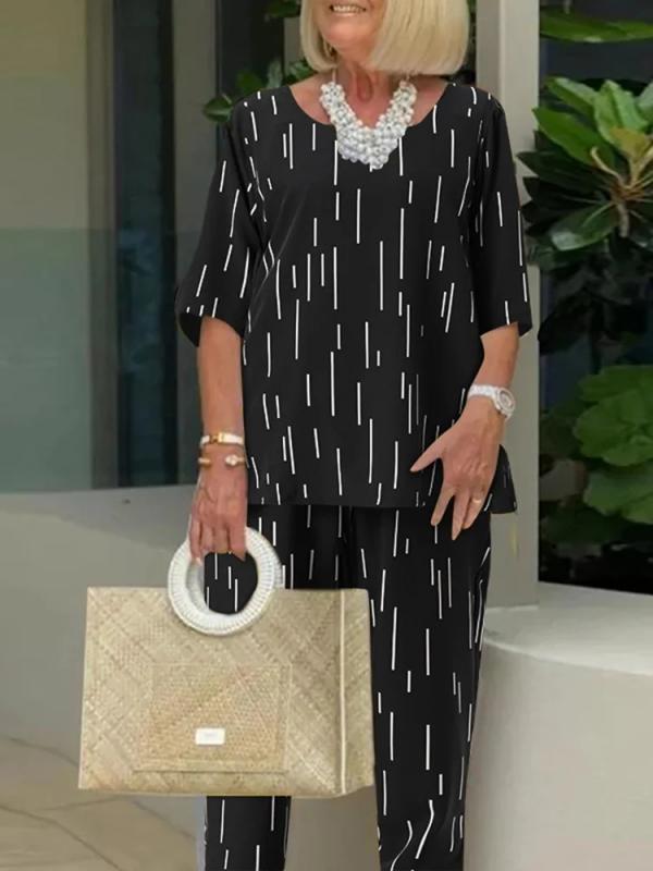 Short Sleeves Plaid Top + Pants Two-piece Suit