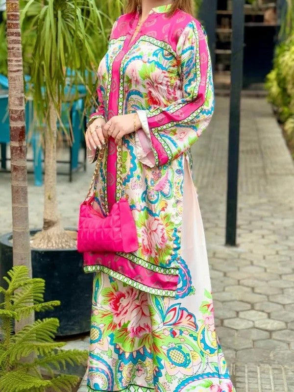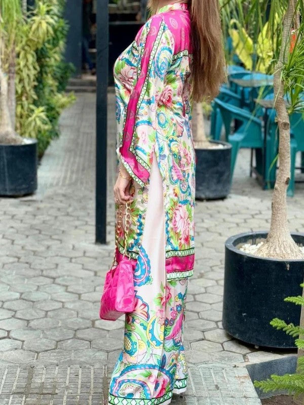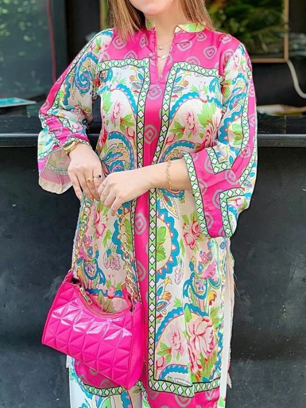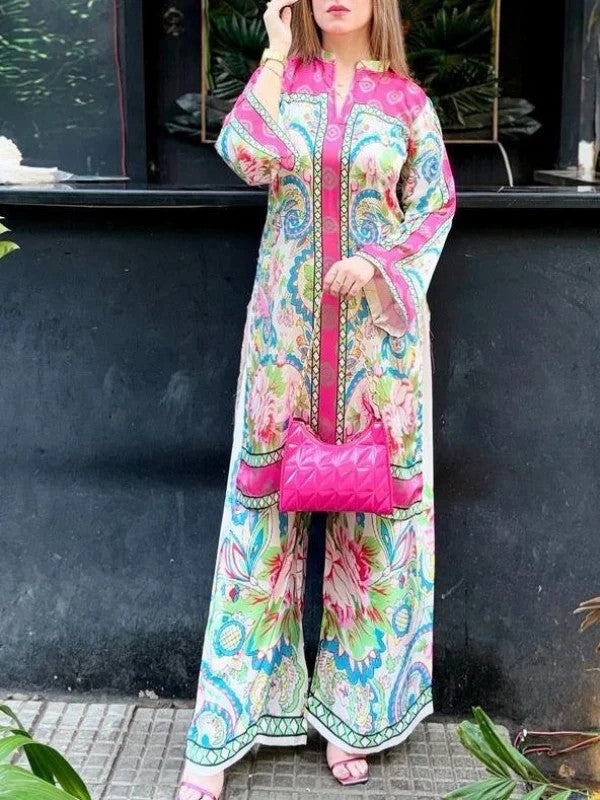 Women's Fashion Loose Casual Printed Long Top and Wide Leg Pants Set