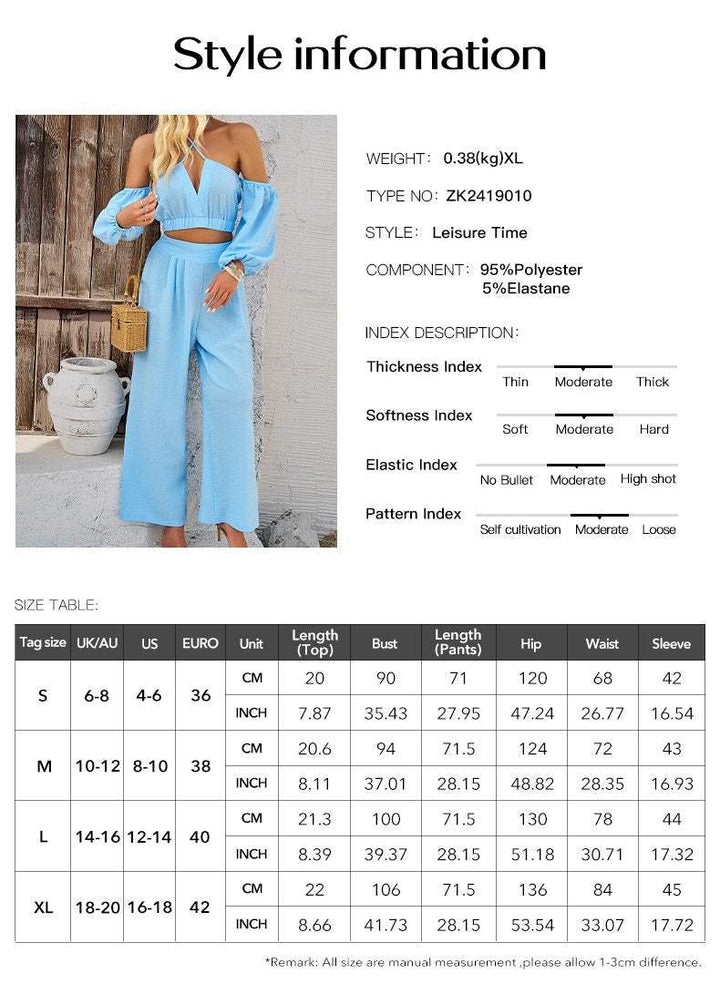 Women's solid color strapless long sleeved top and pants set